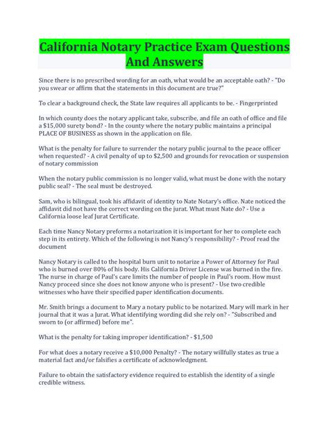 Read Online ca notary practce exam Epub PDF
